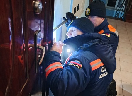 Дежурная смена Чановского поисково-спасательного отряда выезжала на помощь пожилому мужчине, который возвращаясь поздно домой, обронил ключи на заснеженной тропинке. Самостоятельно и с помощью соседей найти их не удалось. Родственников рядом не было. Мужчина был без телефона. Обеспокоенные соседи, понимая риск переохлаждения в сильный мороз, сами вызвали спасателей. Специалисты оперативно при помощи слесарного инструмента вскрыли дверь, не повредив имущество, и помогли мужчине попасть в тёплую квартиру.
