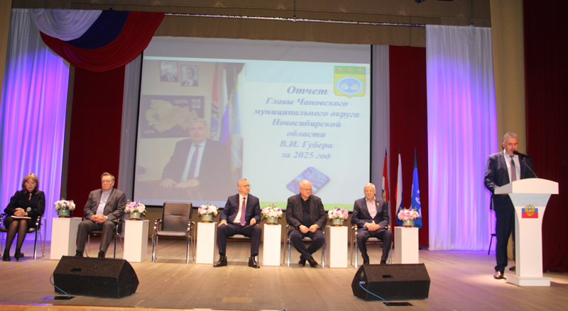 Собрание началось с отчёта Главы Чановского муниципального округа В. И. Губера.